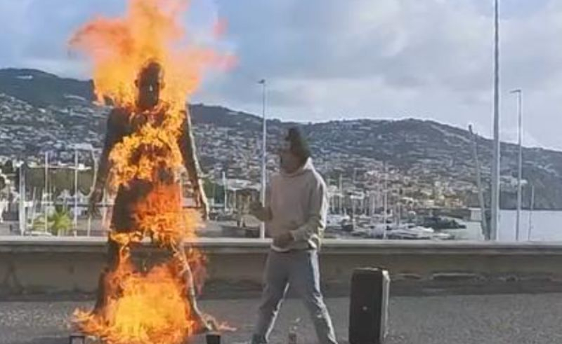 На остров Мадейра беше запалена статуята на известния португалски футболист Кристиано Роналдо.
