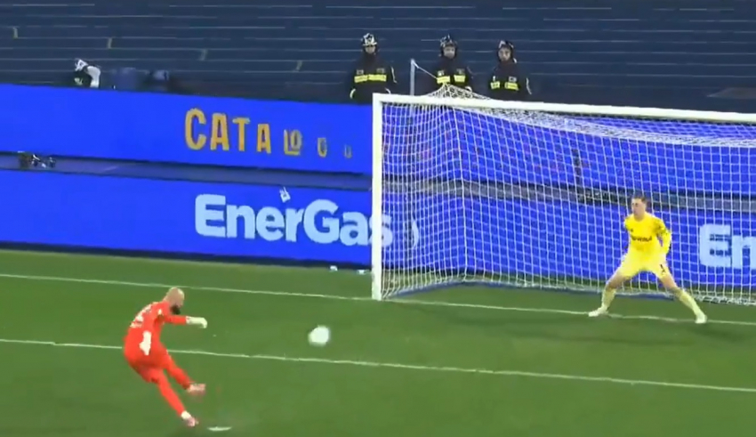 Вратарят на Наполи стреля толкова мощно, че мнозина помислиха, че ще “пробие” мрежата, а силата на удара в напречната греда разтресе цялата врата.