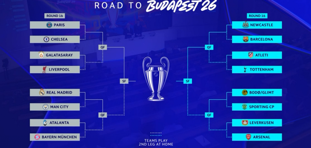 Европейската футболна асоциация (УЕФА) определи срещите за осминафиналите на Шампионската лига.