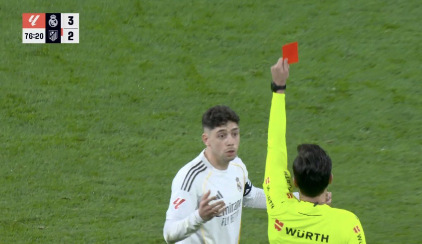 В 76-та минута на мача, при преднина на Реал от един гол, Феде Валверде получи пряк червен картон. Уругваецът, който в този момент носеше капитанската лента и беше отбелязал гол, атакува отзад халфа на Атлетико Мадрид Алекс Баена. Можете да видите противоречивата ситуация ТУК.