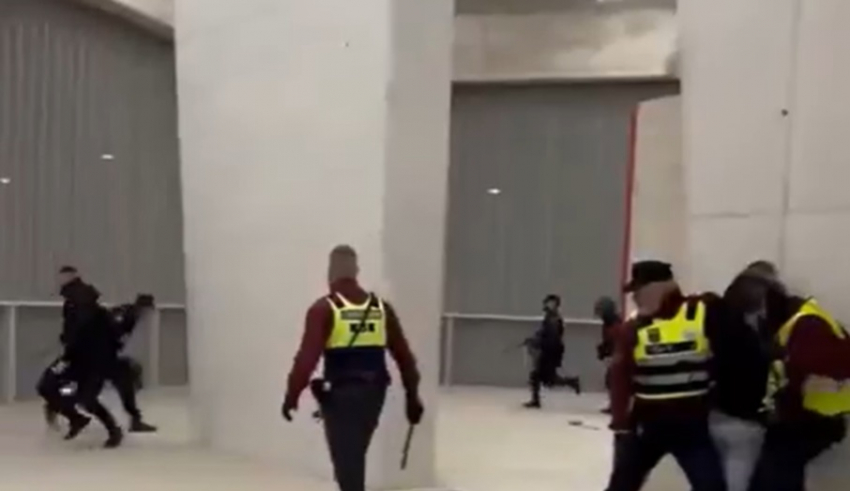 След мача работниците от частната охрана се приближиха към сектора с фенове, където беше човекът, извършил деянието, но това не се хареса на останалата част от зрителите.