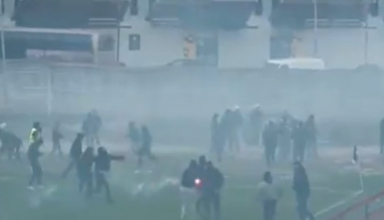 ЖЕСТОК сблъсък между фенове беляза мача от Втората лига на Черна гора между Интернационал и Беране. Според “RTCG”, срещата бе прекъсната за половин час заради споменатите инциденти. На видеото се вижда как десетки момчета нахлуха на терена, преминавайки през порта, която се намира в ъгъла на стадиона. Феновете на Беране бяха нападнати от около 30-тина най-ожесточени привърженици на Сутйеска, така …