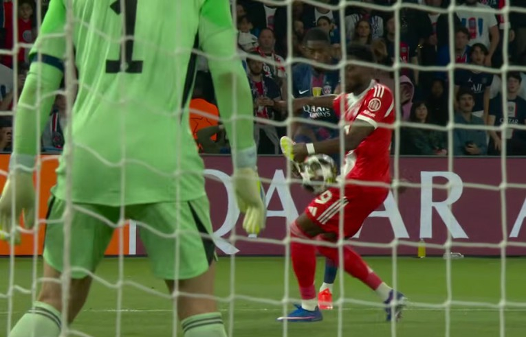 Малко преди отборите да се отправят към съблекалните, топката попадна на ръката на Алфонсо Дейвис след центриране от Усман Дембеле. VAR извика съдията да прегледа ситуацията на монитора, след което той промени първоначалното си решение и отсъди наказателен удар за ПСЖ, позволявайки им да излязат на почивка с предимство.